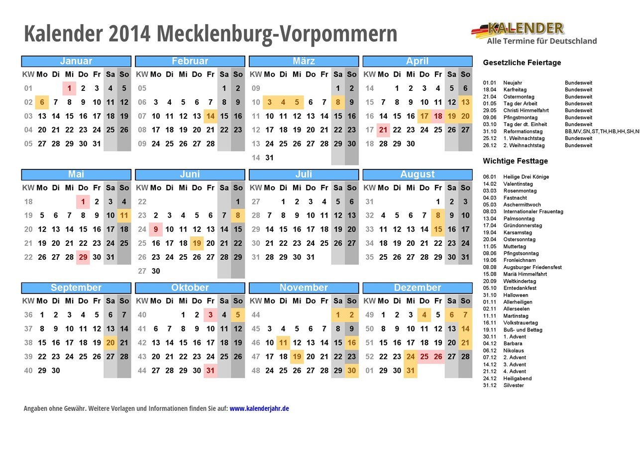 - Kalender 2014 Mecklenburg-Vorpommern