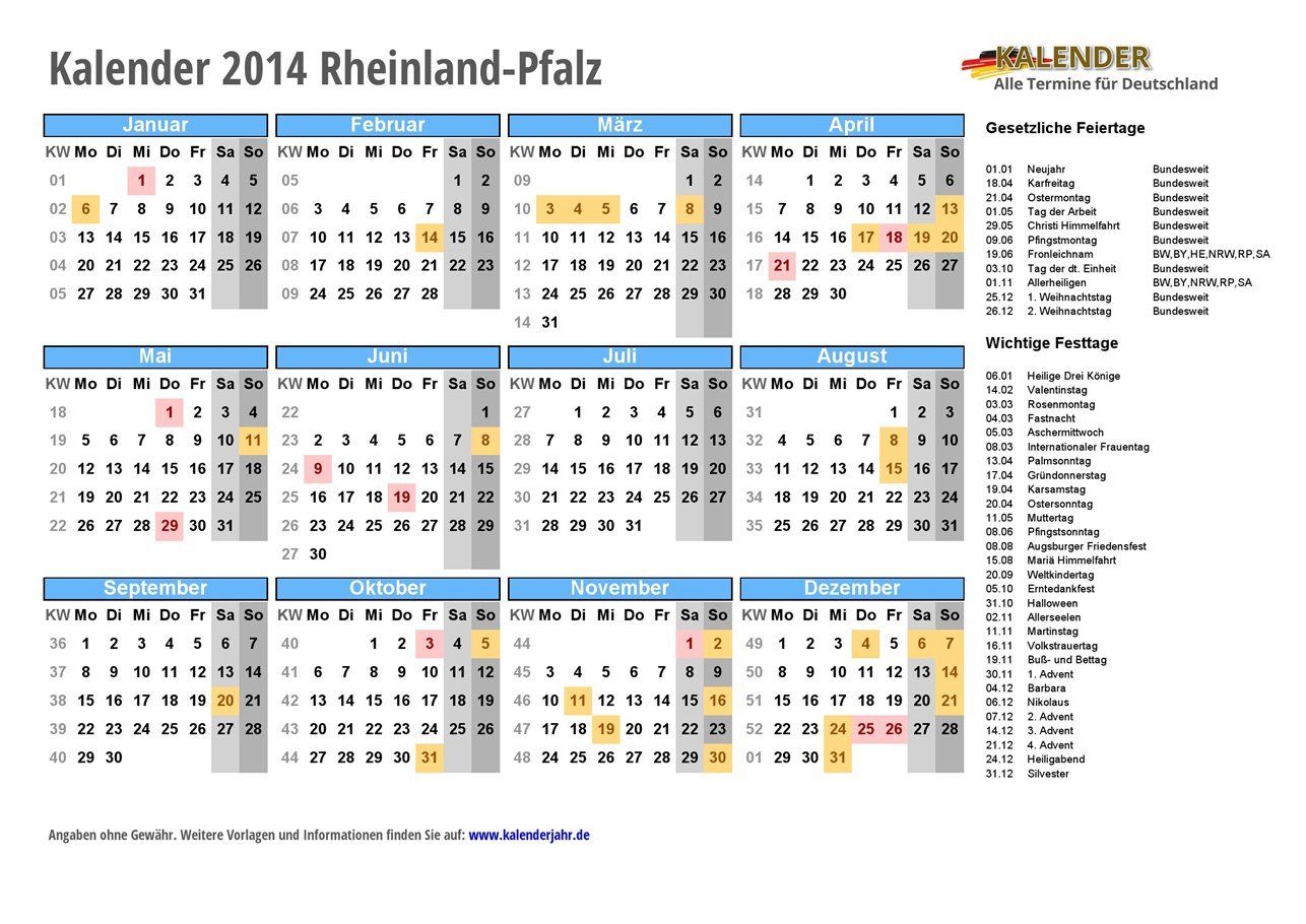 - Kalender 2014 Rheinland-Pfalz