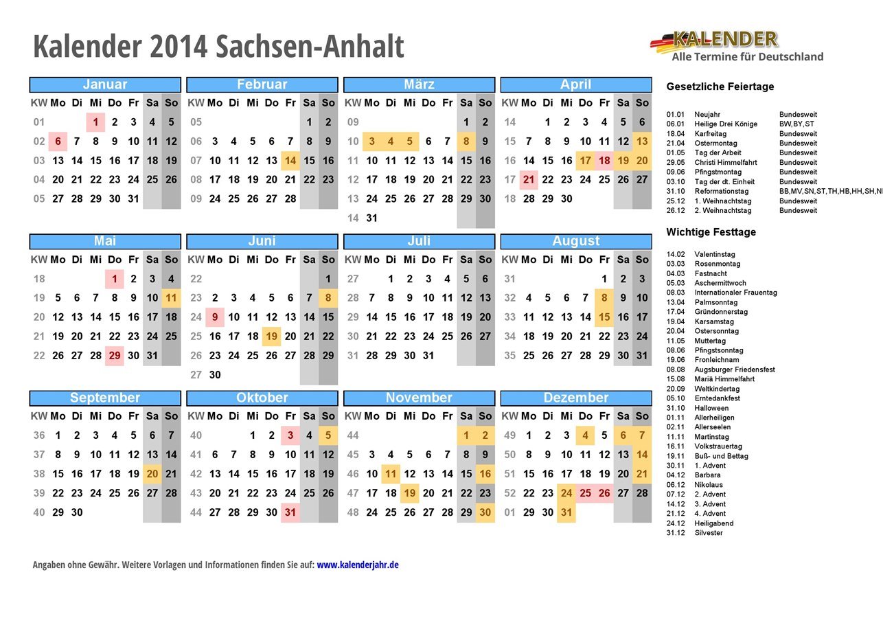 - Kalender 2014 Sachsen-Anhalt