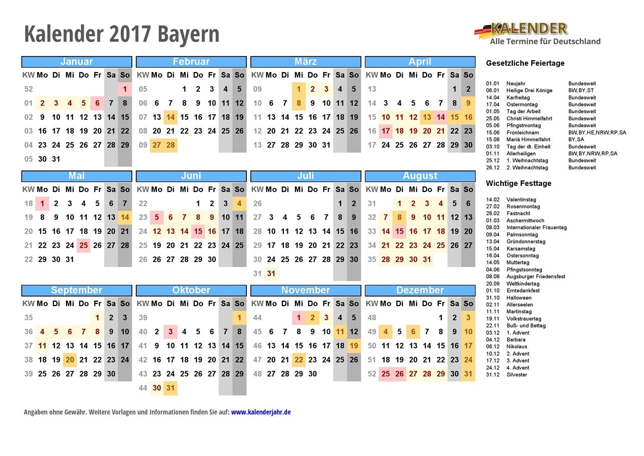 - Kalender 2017 Bayern