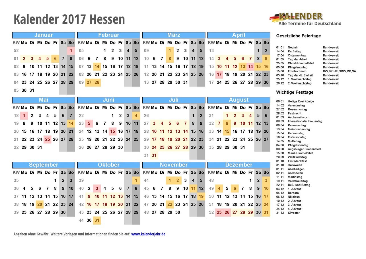 - Kalender 2017 Hessen