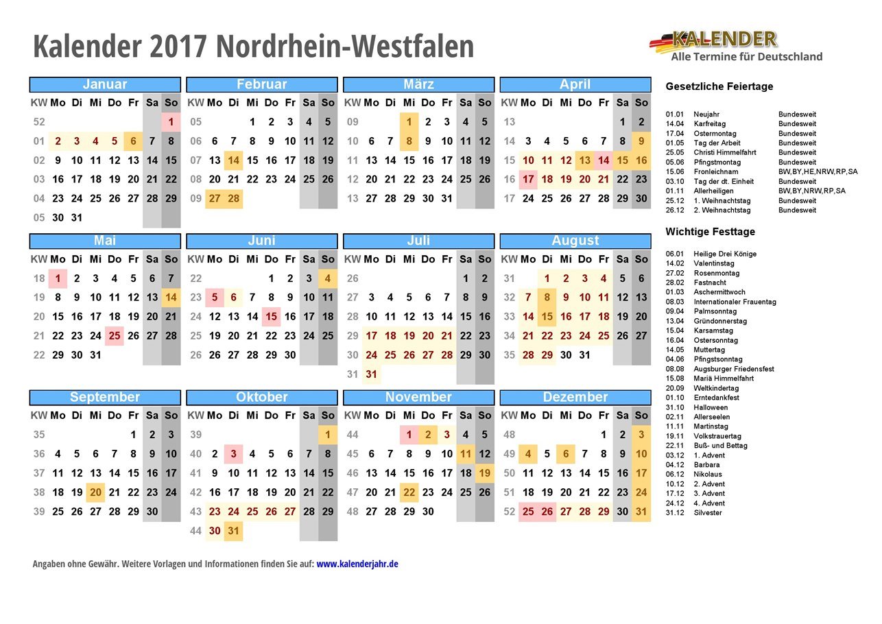 - Kalender 2017 Nordrhein-Westfalen