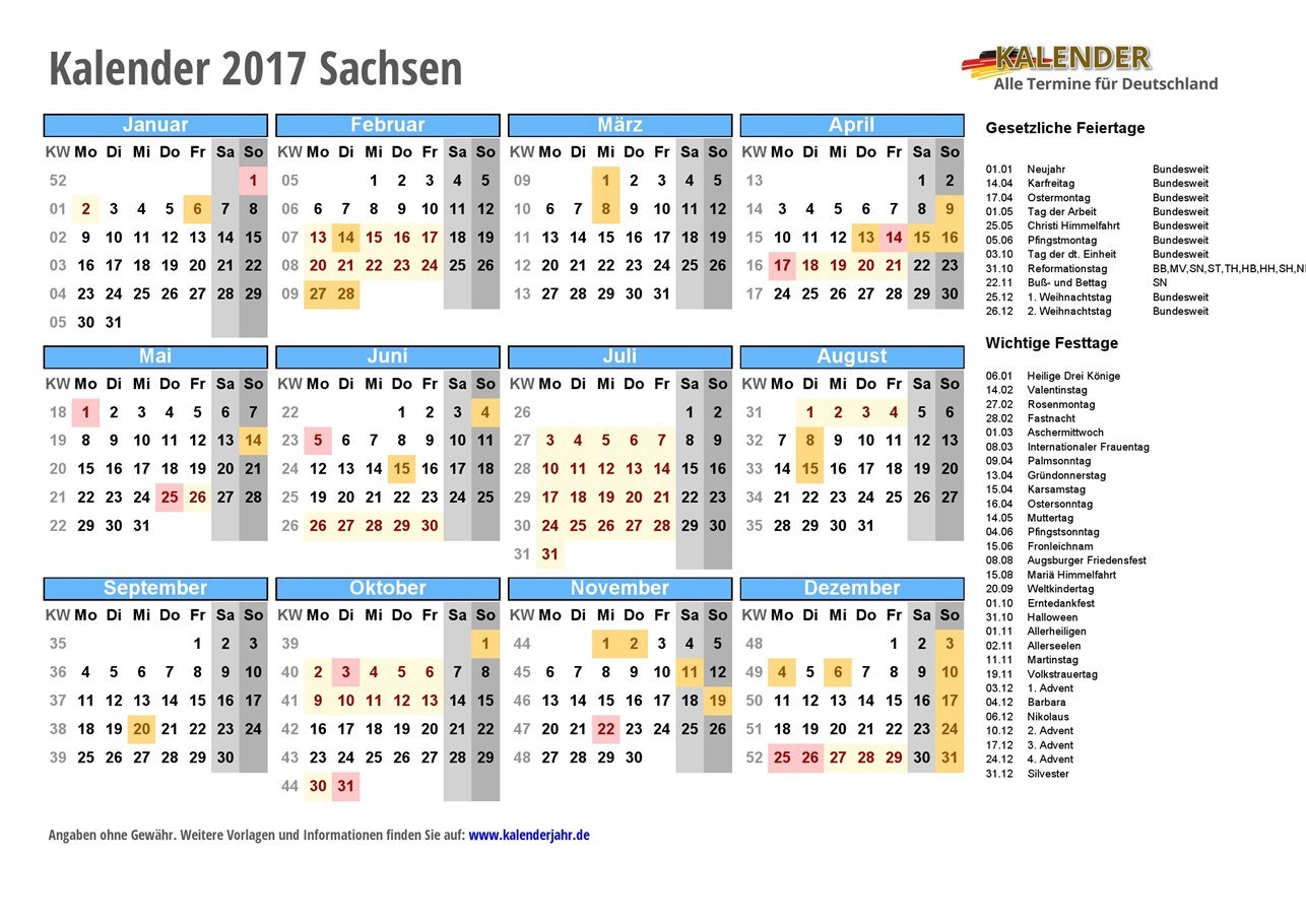 - Kalender 2017 Sachsen