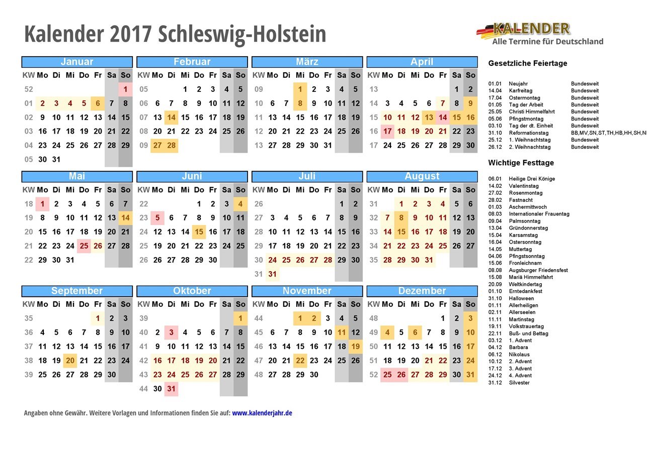 - Kalender 2017 Schleswig-Holstein