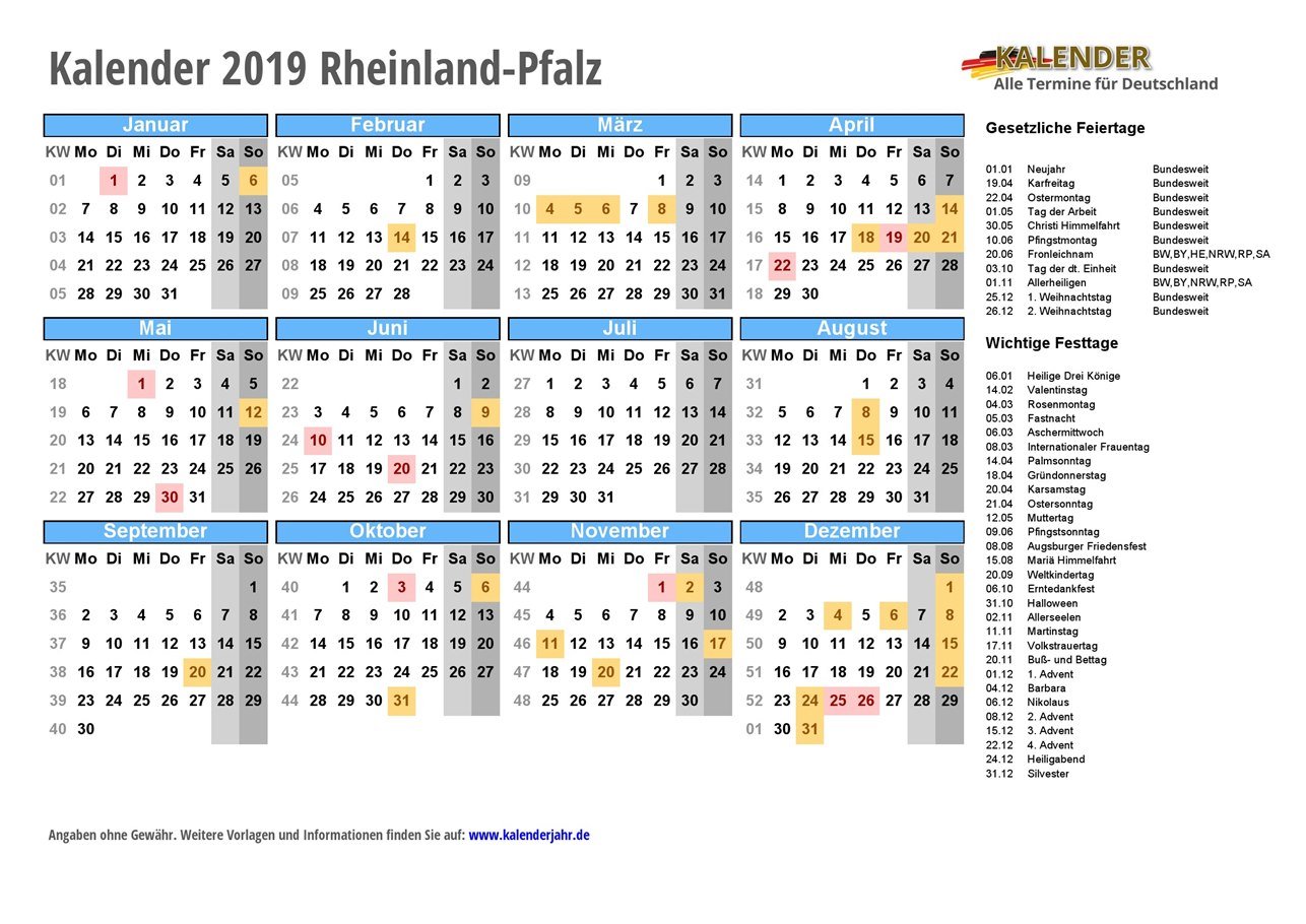 - Kalender 2019 Rheinland-Pfalz