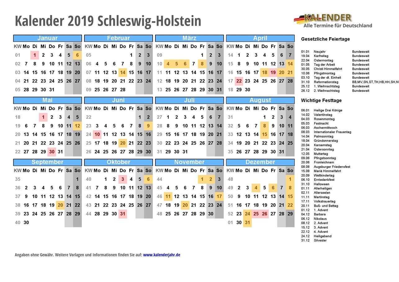 - Kalender 2019 Schleswig-Holstein