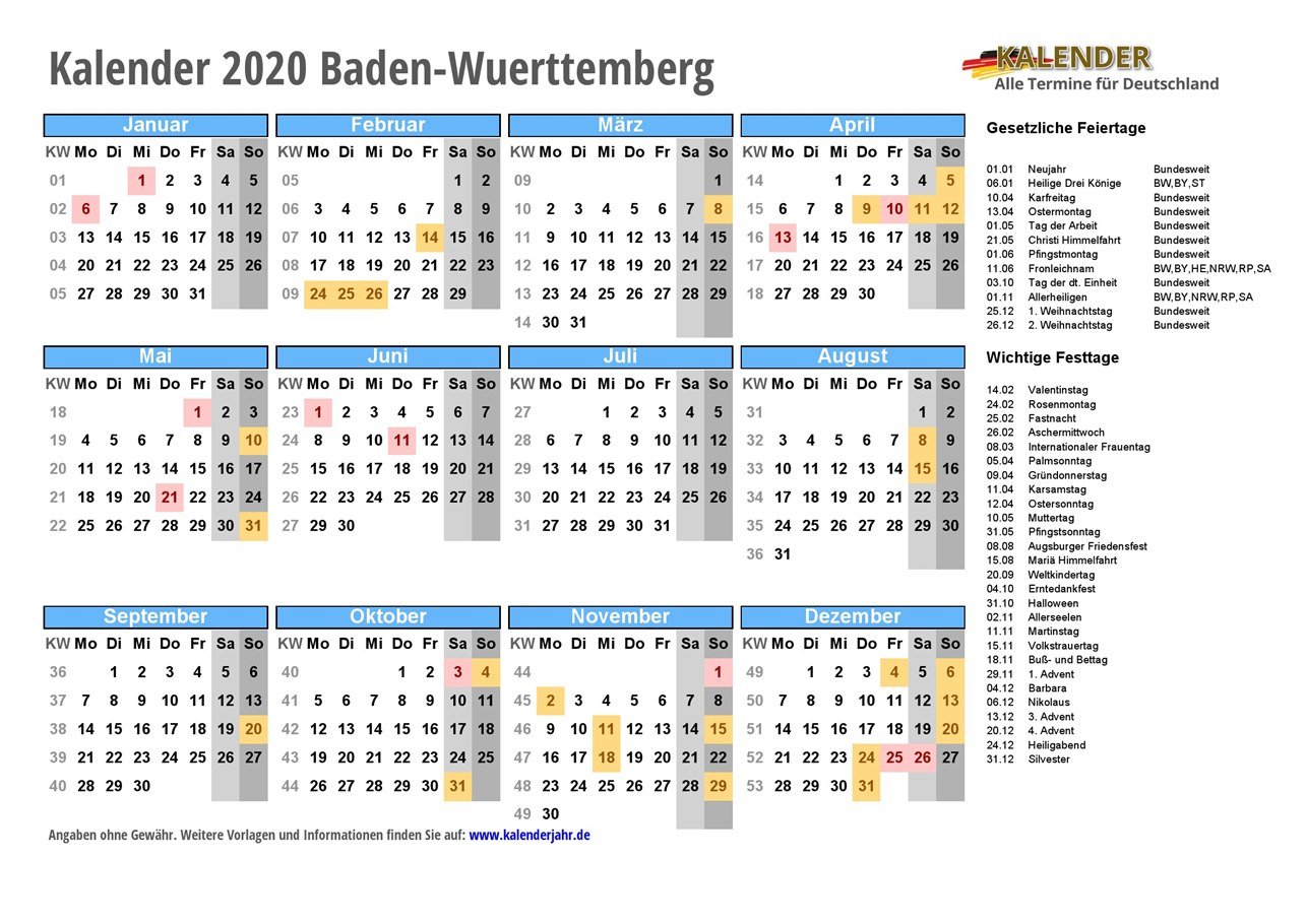 - Kalender 2020 Baden-Wuerttemberg