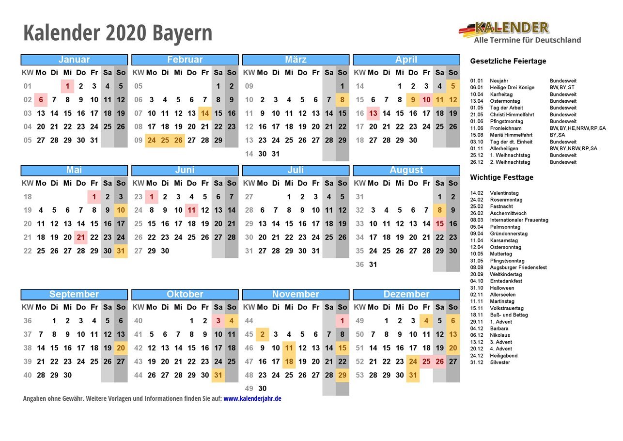 - Kalender 2020 Bayern