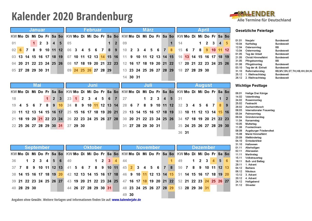 - Kalender 2020 Brandenburg