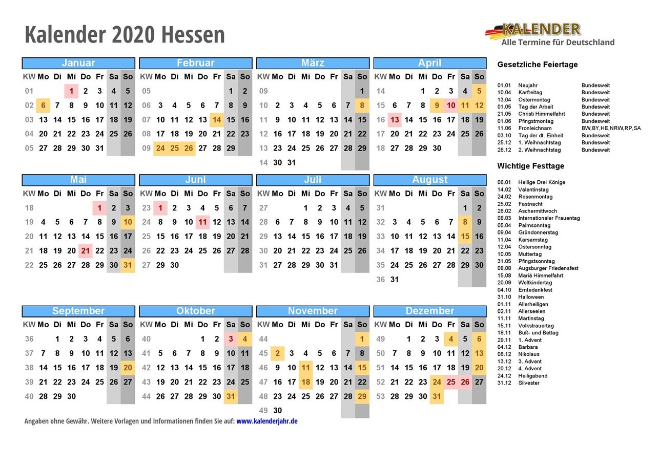 - Kalender 2020 Hessen
