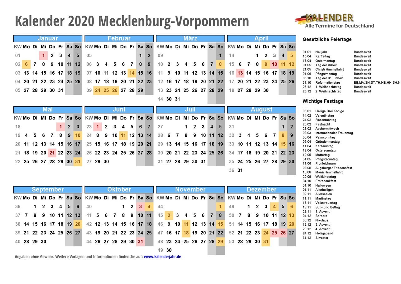 - Kalender 2020 Mecklenburg-Vorpommern