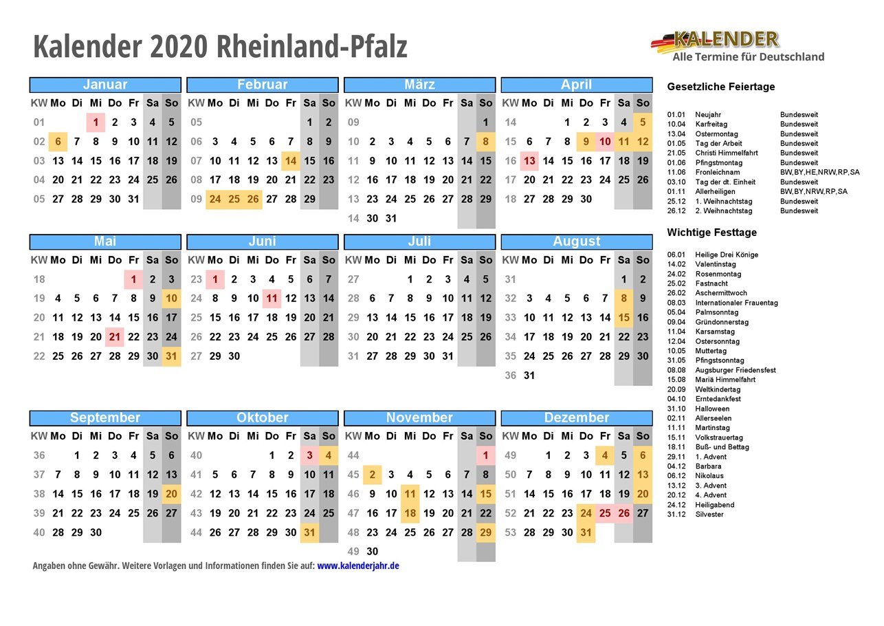 - Kalender 2020 Rheinland-Pfalz