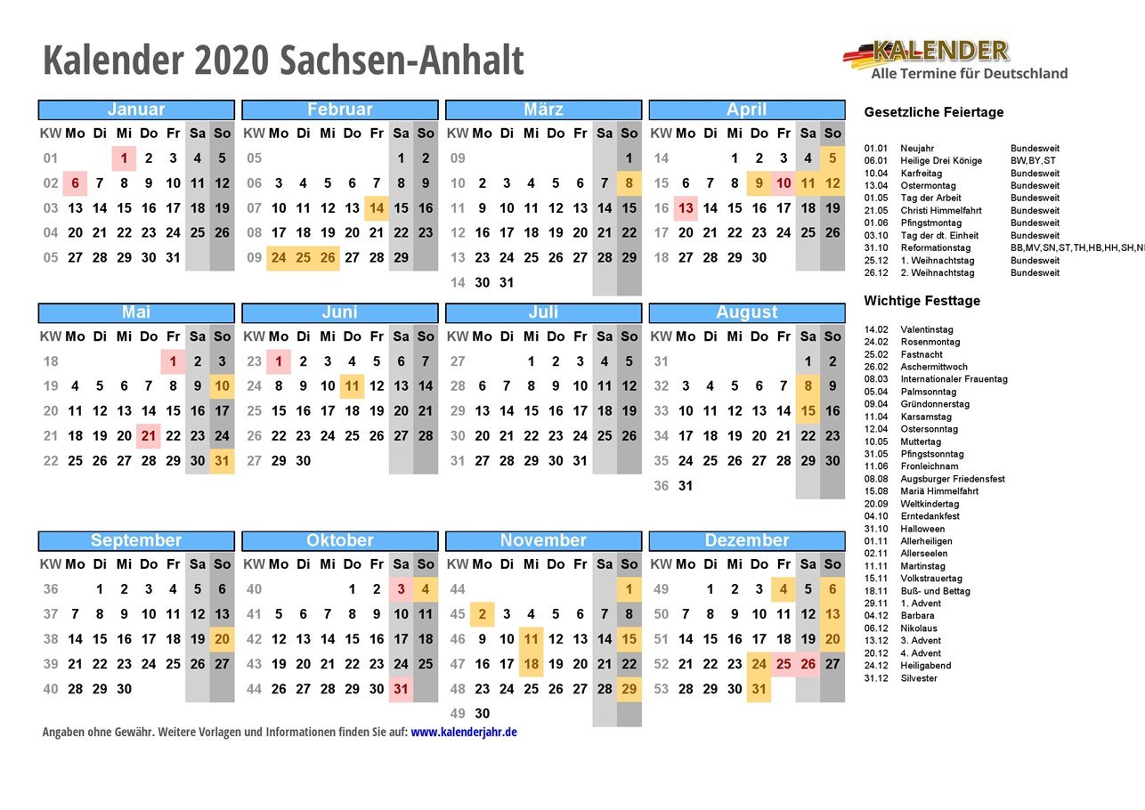 - Kalender 2020 Sachsen-Anhalt