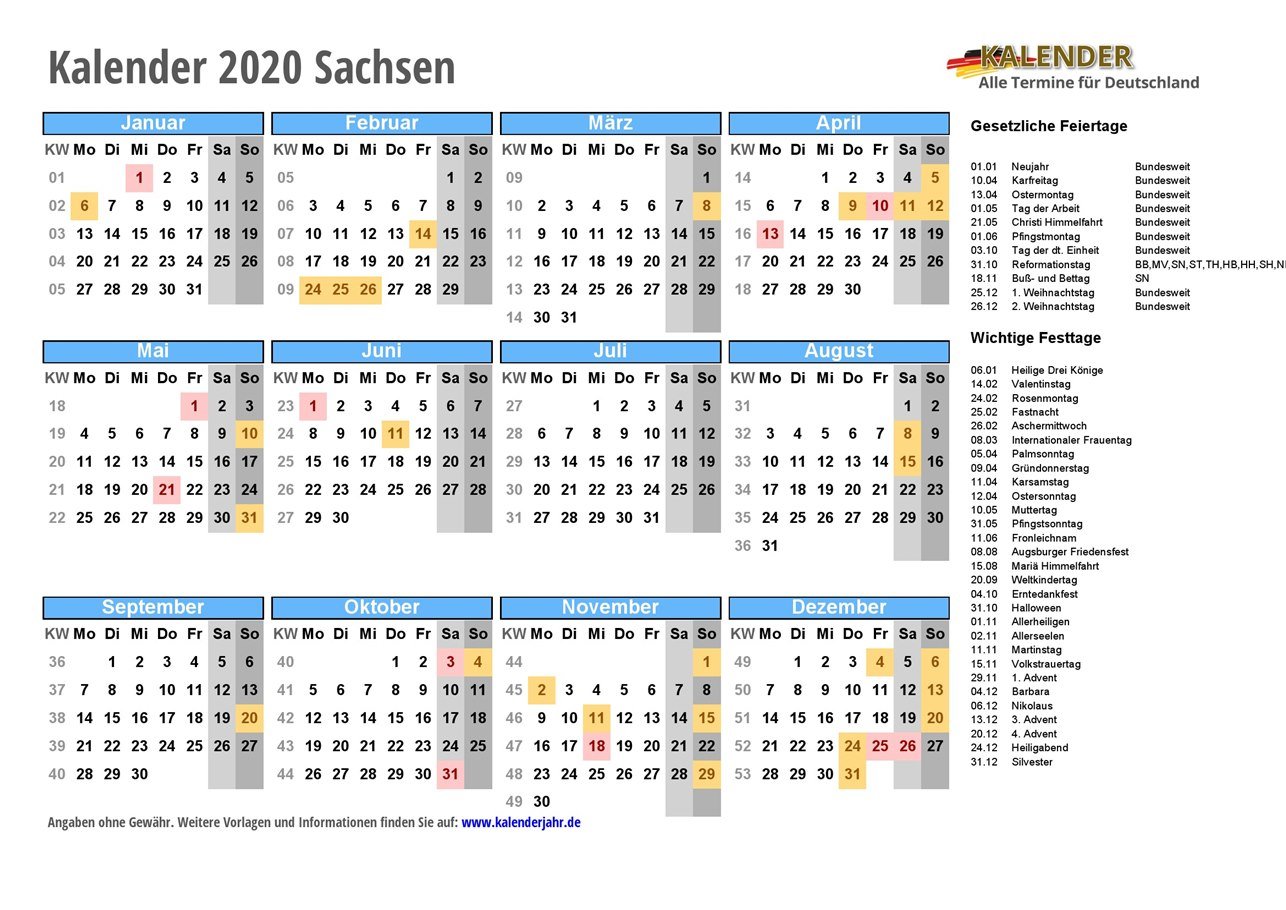 - Kalender 2020 Sachsen
