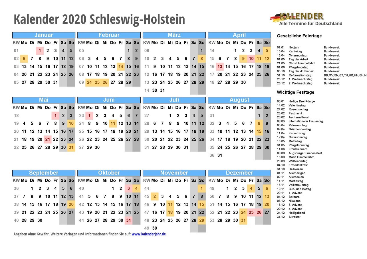 - Kalender 2020 Schleswig-Holstein