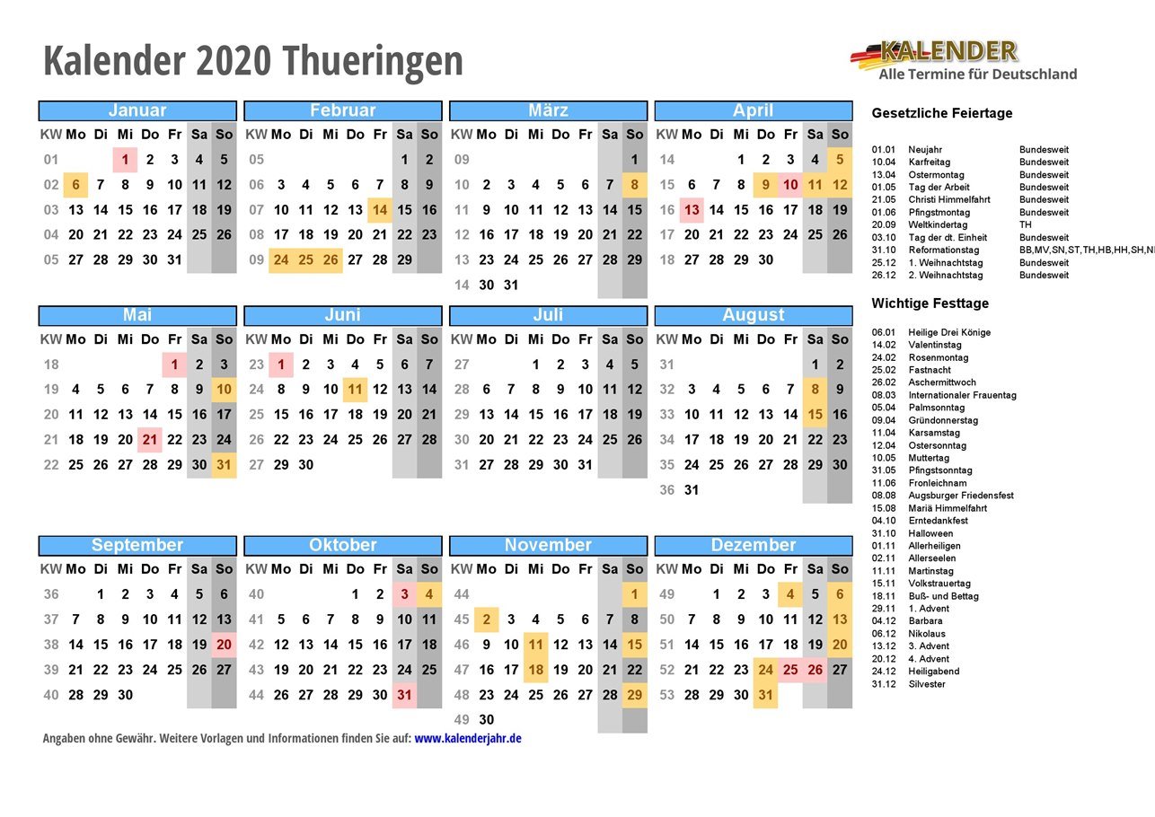 - Kalender 2020 Thueringen