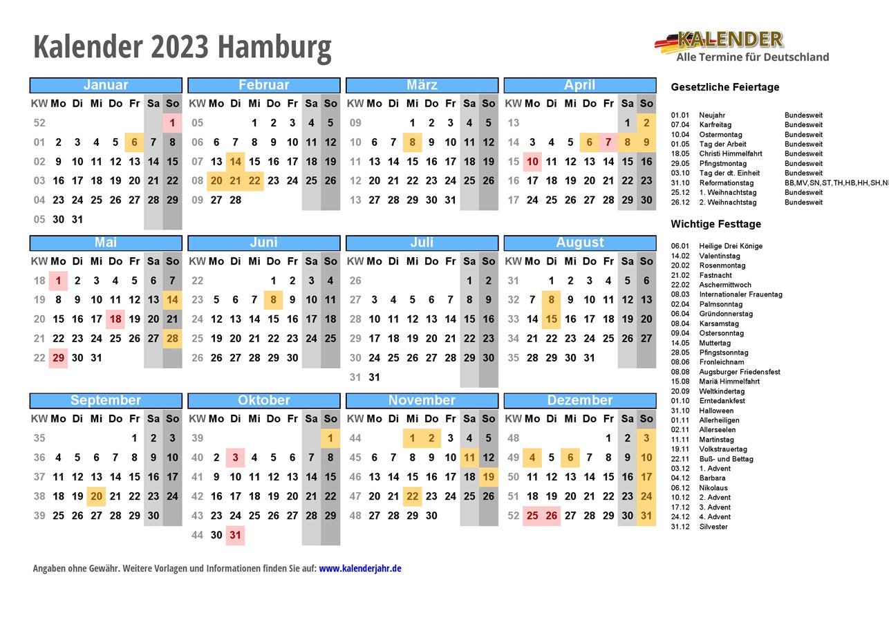 Kalender 2023 Niedersachsen zum Ausdrucken