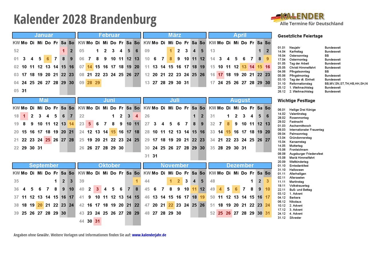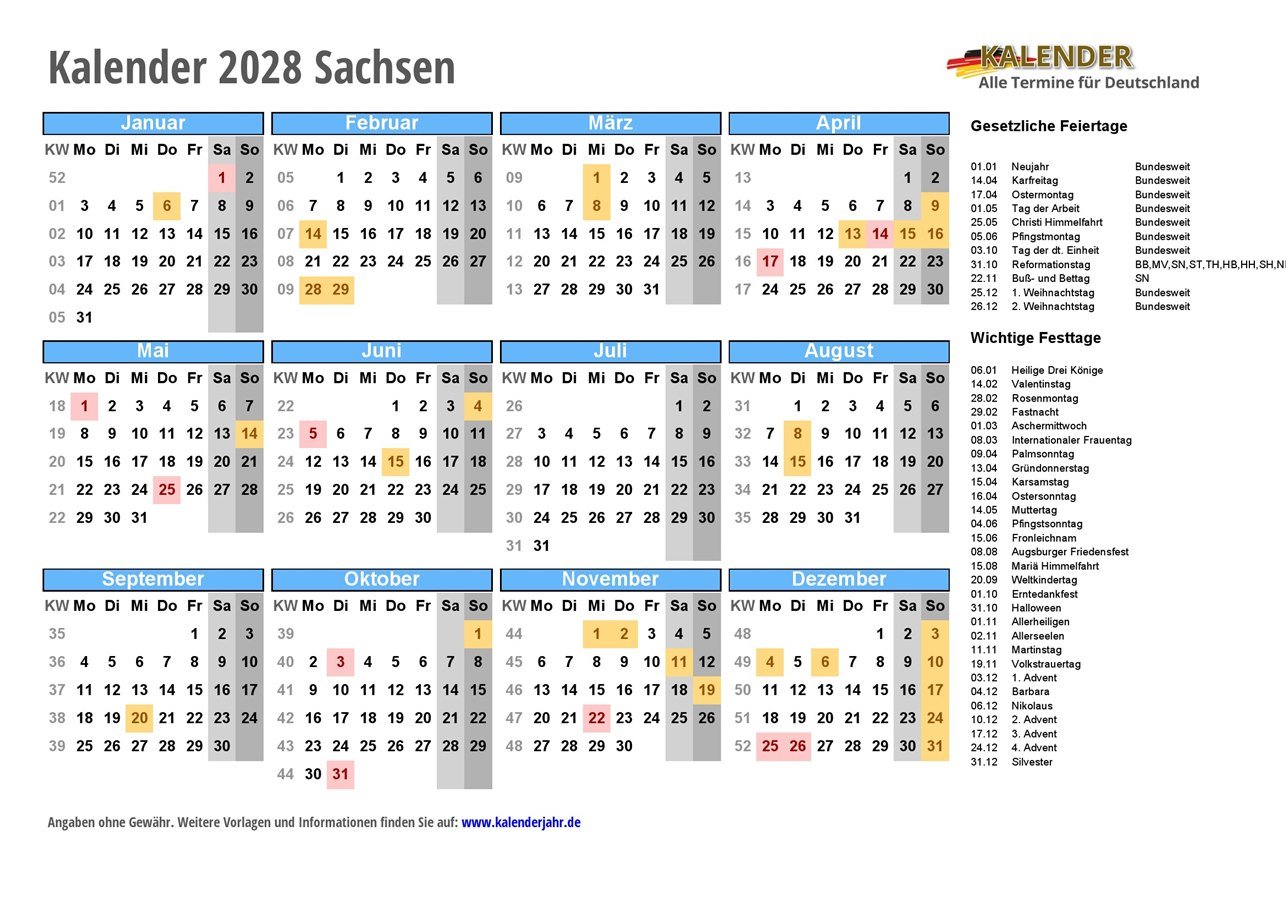 Kalender 2028 Sachsen-Anhalt zum Ausdrucken