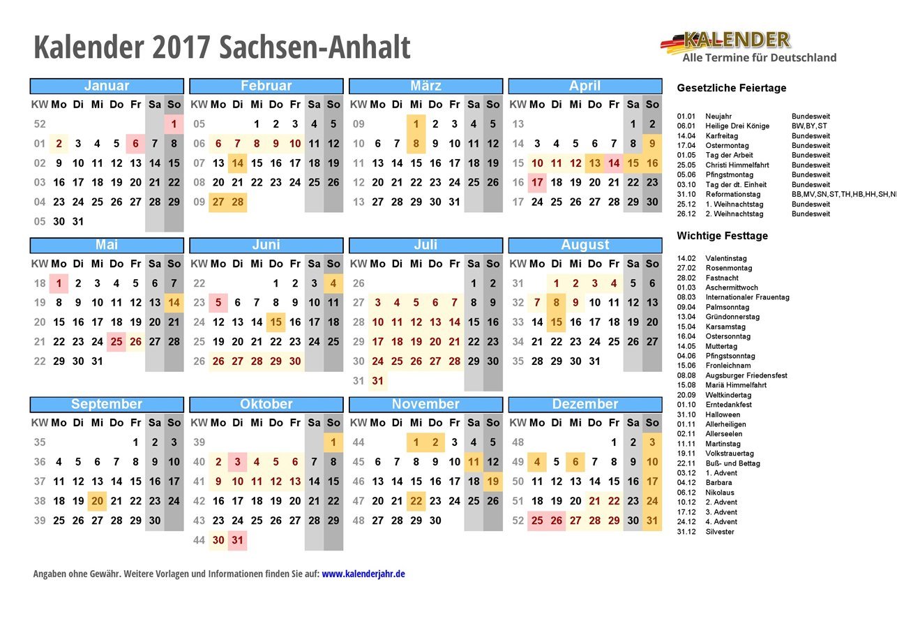 - Kalender 2017 Sachsen-Anhalt