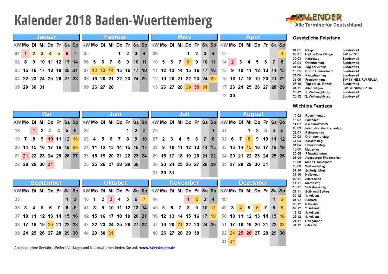 - Kalender 2018 Baden-Wuerttemberg