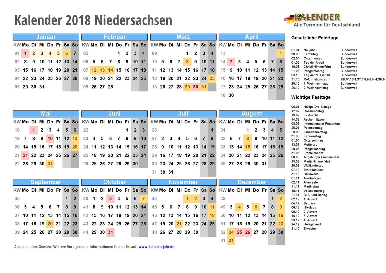 Kalender 2018 Niedersachsen zum Ausdrucken