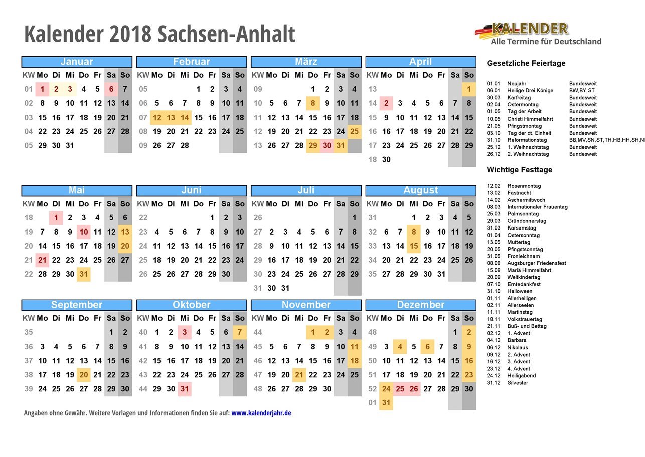 - Kalender 2018 Sachsen-Anhalt