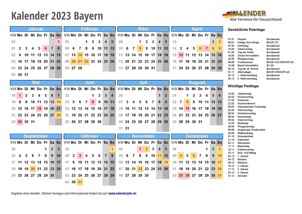 Kalender 2023 Bayern zum Ausdrucken